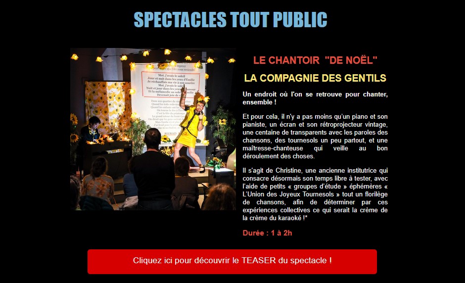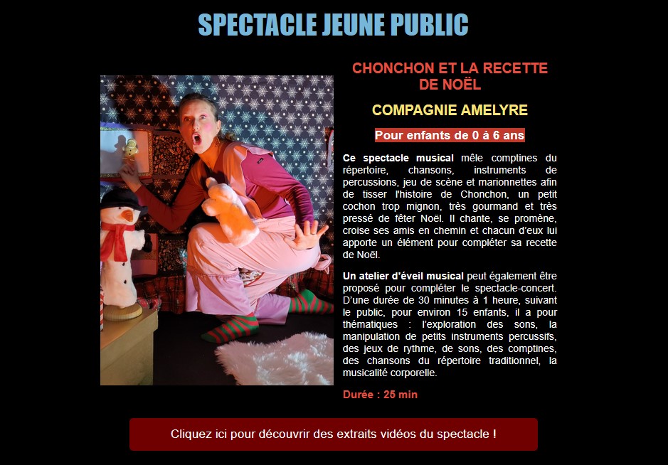 PROPOSITIONS NOËL 2025 SPECTACLE JEUNE PUBLIC + CHANTOIR DE NOËL + CONCERT SPECIAL NOËL A VOUS DE CHOISIR ! pour tous les âges et tous les goûts…
